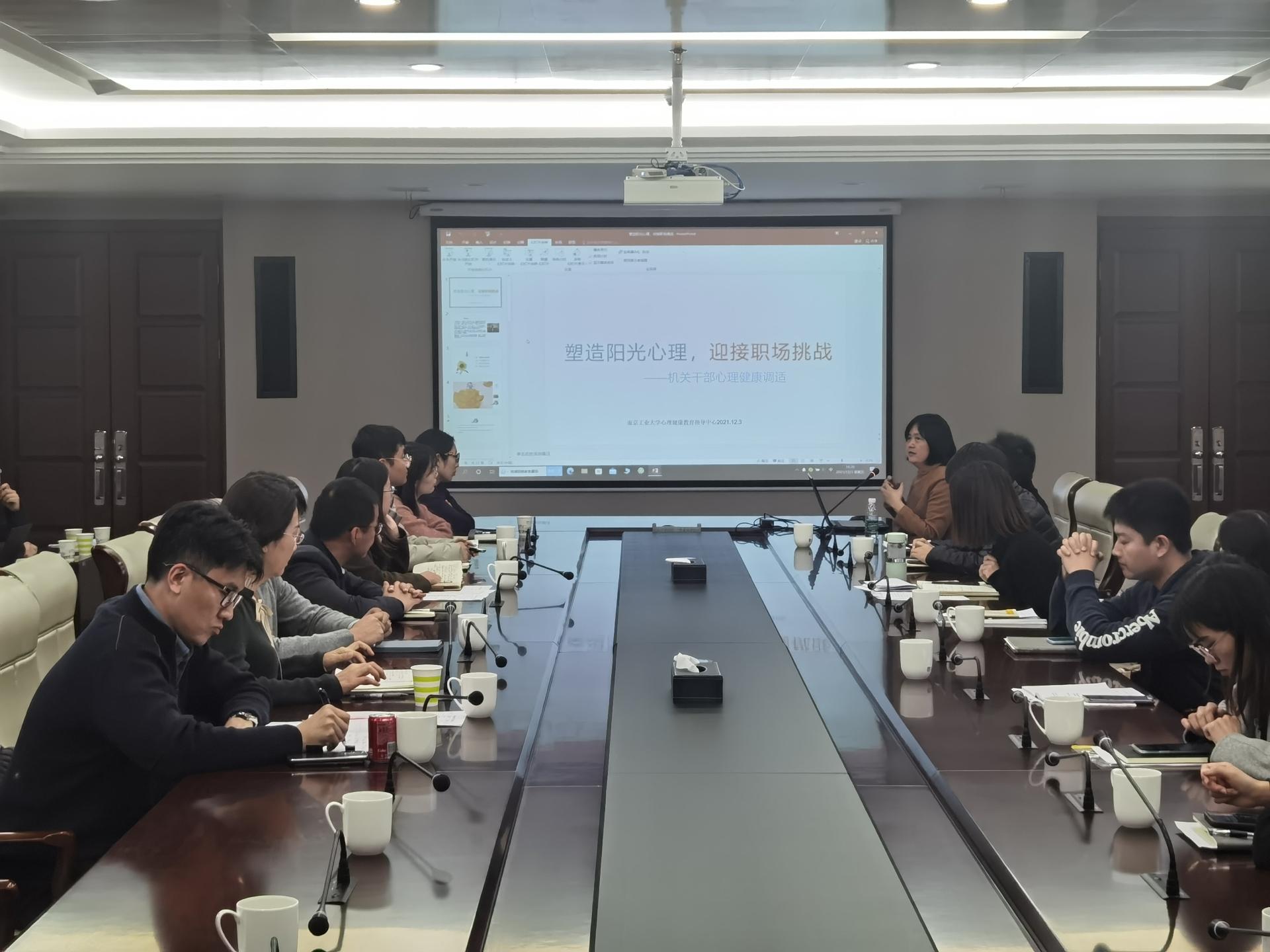 座谈会后,校部机关工会邀请了我校心理健康教育指导中心张晓文老师做“塑造阳光心理,迎接职场挑战——机关干部心理健康调适”专题讲座。讲座由校部机关工会主席张海燕主持。张晓文老师从“奇妙的心理世界”“什么是阳光心态”“机关工作的挑战”“现在可以做什么”等角度出发,依托丰厚的专业储备,立足独特的观察视角,用深入浅出的讲解,客观分析了造成机关工作人员心理压力的系统性因素,阐述了克服心理健康问题的若干对策。