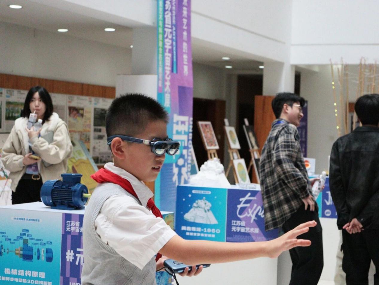 近日,江苏省元宇宙艺术展高校巡回展在南京工业大学艺术设计学院精彩亮相。展览以前沿数字技术与多元艺术形式深度融合为核心,为师生带来一场沉浸式的元宇宙艺术体验,并吸引了南京医科大学、南京工业大学实验小学、南京一中工大中学等多所院校师生代表齐聚一堂,共同见证科技与艺术交融的魅力。校工会主席彭亚辉、艺术设计学院党委书记周静以及学院工会、团学组织负责人陪同接待。