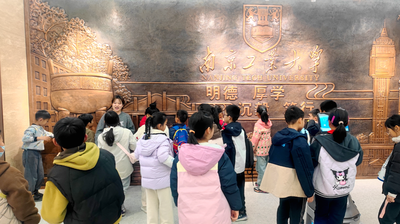 在大学生志愿者带领下,小读者们先后参观时钧园、打卡工大水塔,最后走进校史馆。讲解员引导大家深入了解校史馆、时钧馆、欧阳平凯纪念馆内涵,感受学校123年办学历史与“明德、厚学、沉毅、笃行”校训精神,体悟产学研协同创新特色。