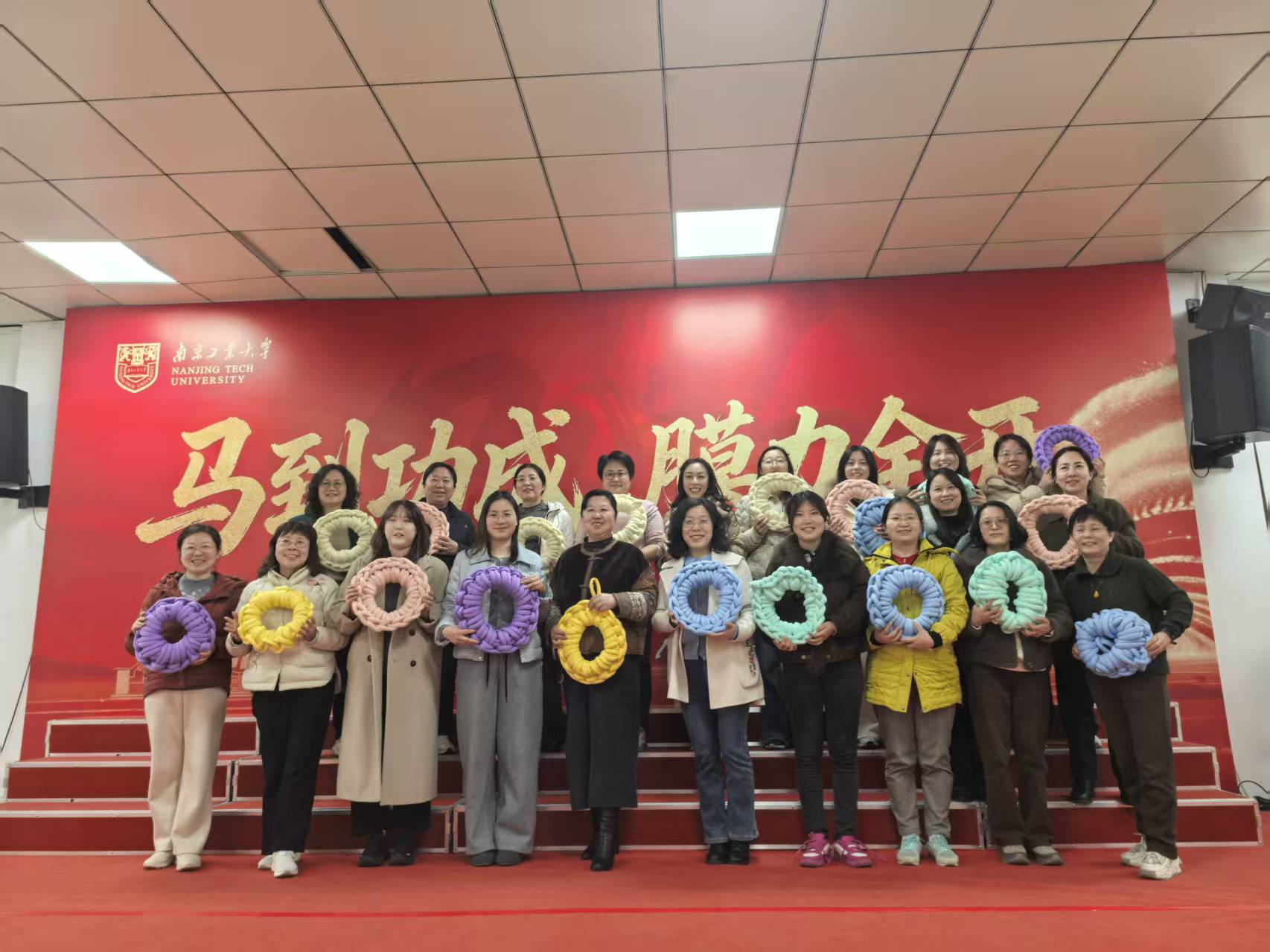 一个半小时的时光转瞬即逝,三十余件造型可爱、蓬松柔软的手编抱枕相继完成。老师们手捧亲手制作的成果,脸上洋溢着满满的成就感与幸福感,纷纷拍照留念。此次活动不仅让女教职工们体验了手工创作的乐趣,缓解了工作压力,更增进了彼此间的沟通与情谊,展现了新时代女教职工热爱生活、积极向上的精神风貌。