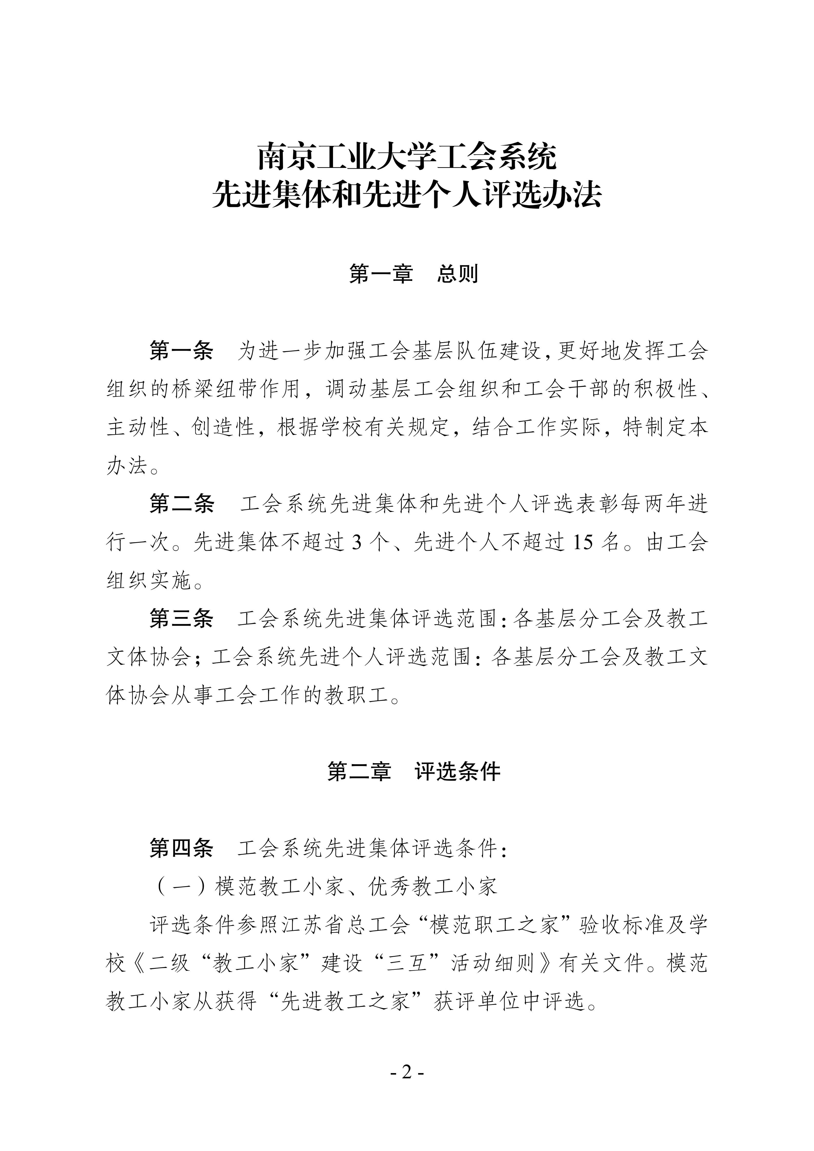 南京工业大学工会系统先进集体和先进个人评选办法